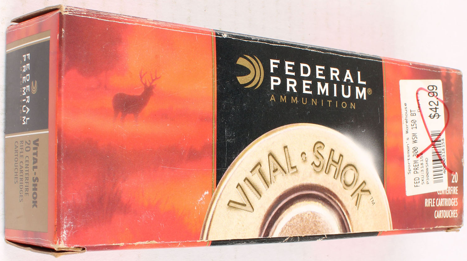 Federal, Vital-Shok, 300 Win Short Mag, 150 Grain Nosler Ballistic Tip, Full with 1rd being incorrect, 1pc., multi-colored box, box is solid with very good color, light shelf wear, light edge & corner wear, end flaps are solid, ammo is excellent. Grade: Very Good ++ - Value: 20 to 80
