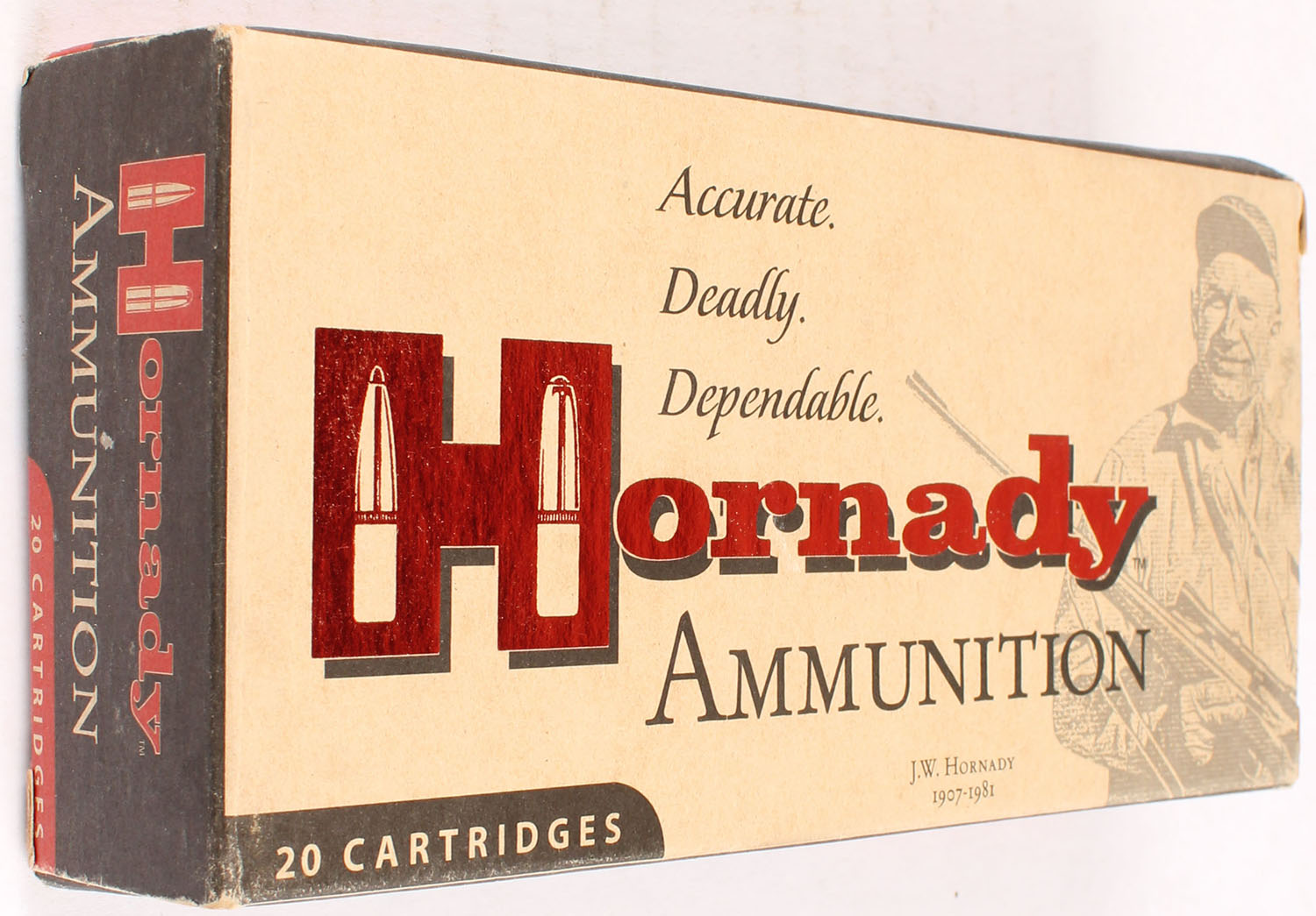 Hornady, Custom, 450 Marlin, 350 Grain FP InterLock, Full, 1pc. multi-colored box, box is solid with excellent color, Ammo is excellent. Grade: Excellent + - Value: 50 to 100