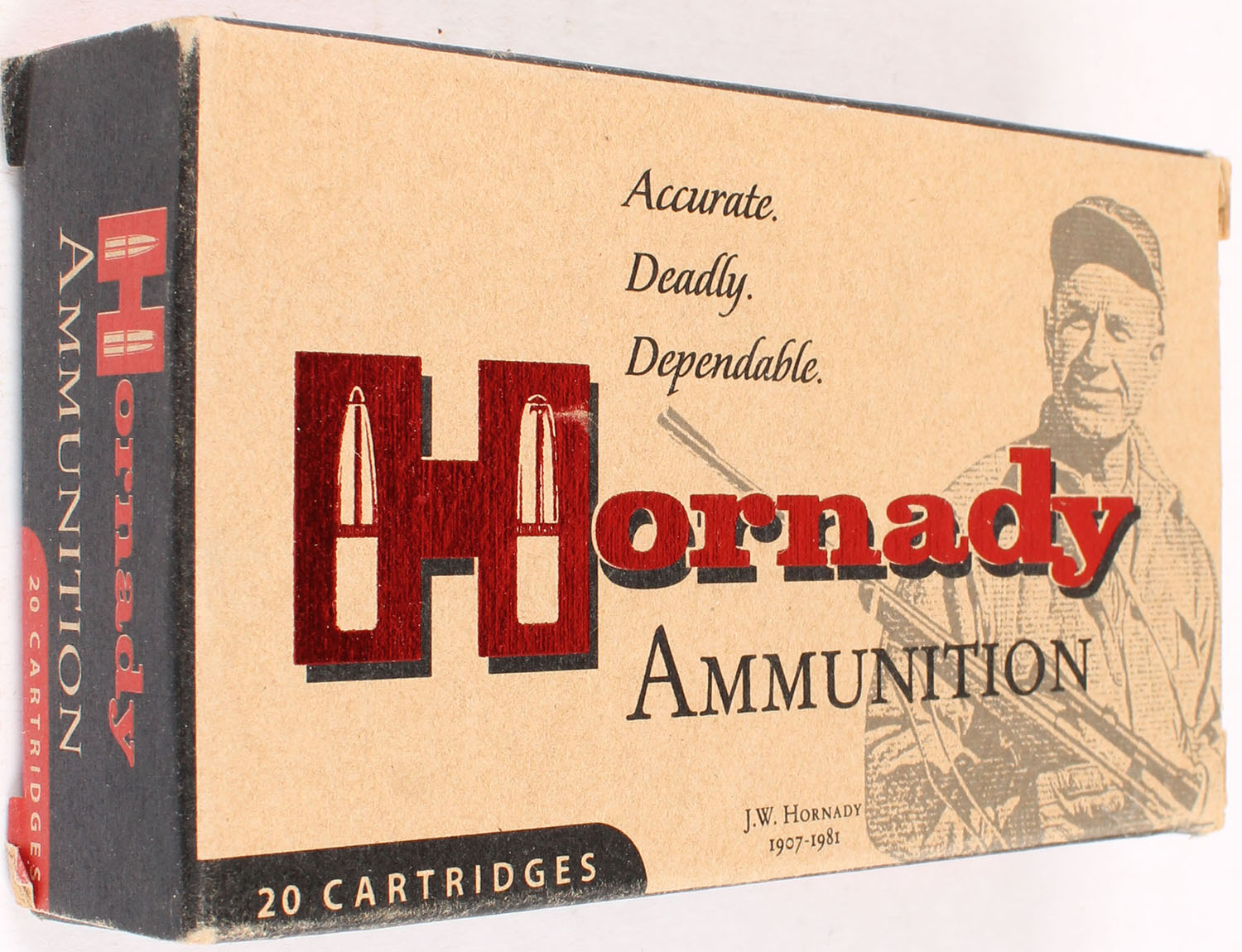 Hornady, Custom, .358 WIN., 200 Grain SP, Full, 1pc. multi-colored box, box is solid with excellent color, Ammo is excellent. Grade: Excellent + - Value: 20 to 60