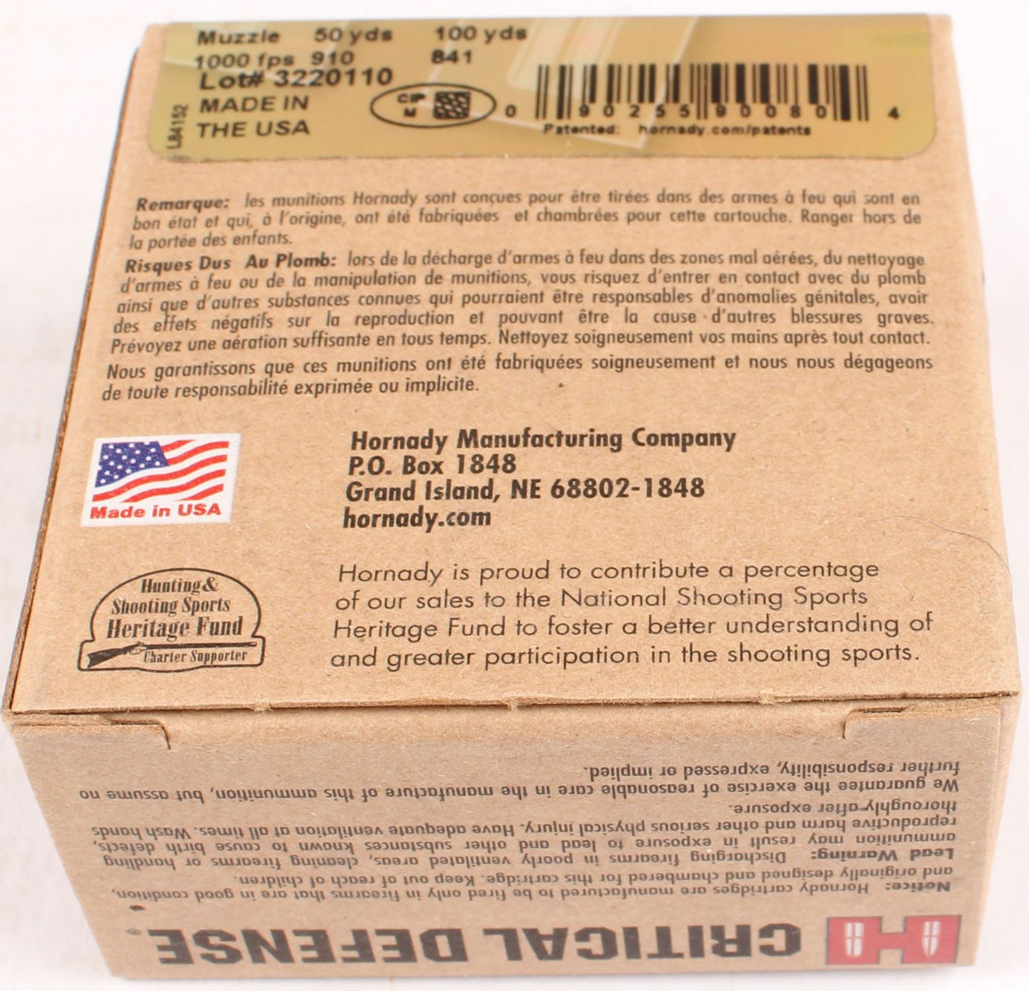 Hornady, Critical Defense, 380 Auto, 90 Grain FTX, Full, 1pc. multi-colored box, box is solid with excellent color, Ammo is excellent. Grade: Excellent ++ - Value: 16 to 50