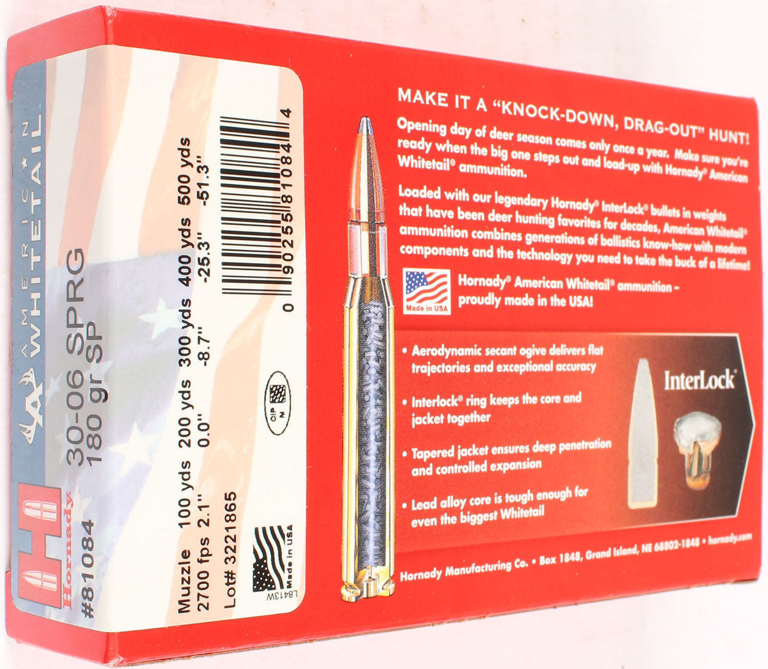 | Hornady, American Whitetail, 30-06 SPRG, 180 Grain SP, Full, 1pc...