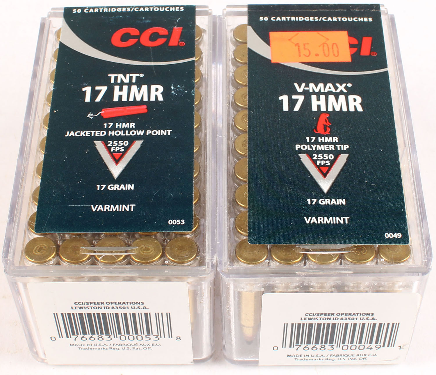 | Lot of 2 CCI, 17 HMR HP, FULL & SEALED, 50 rds each or 100 tota...