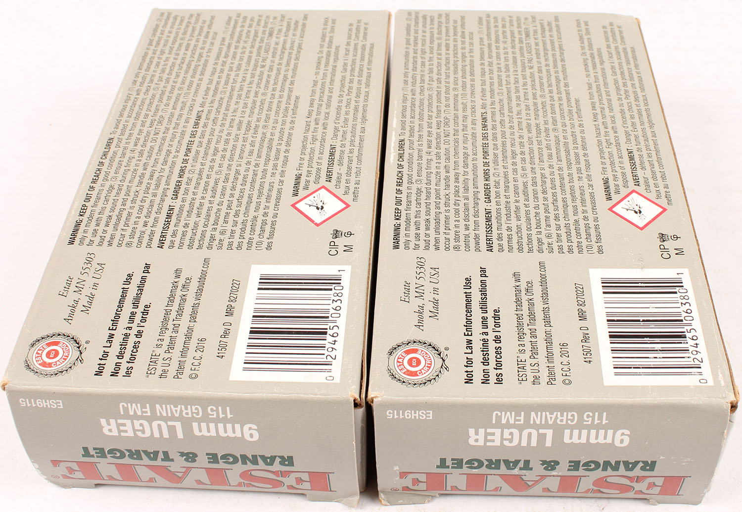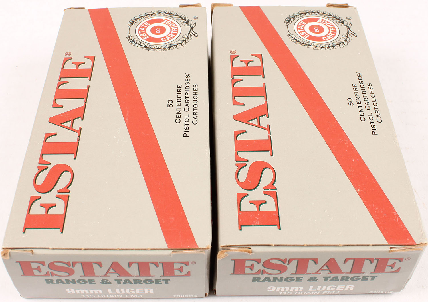Lot of 2 Estate Range/Target, 9mm Luger, 115 Grain, Full, 1pc. multi-colored box, box is solid, Ammo is excellent. Grade: Excellent - Value: 20 to 60