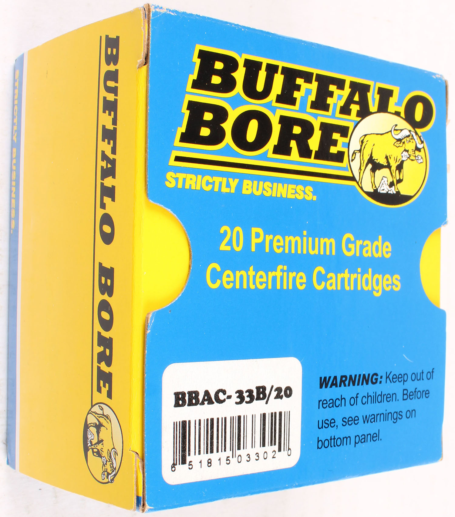 Buffalo Bore, .38 Super +P, 124 Grain JHP, Full, 1pc. multi-colored box, box is solid, Ammo is excellent. Grade: Excellent - Value: 20 to 80