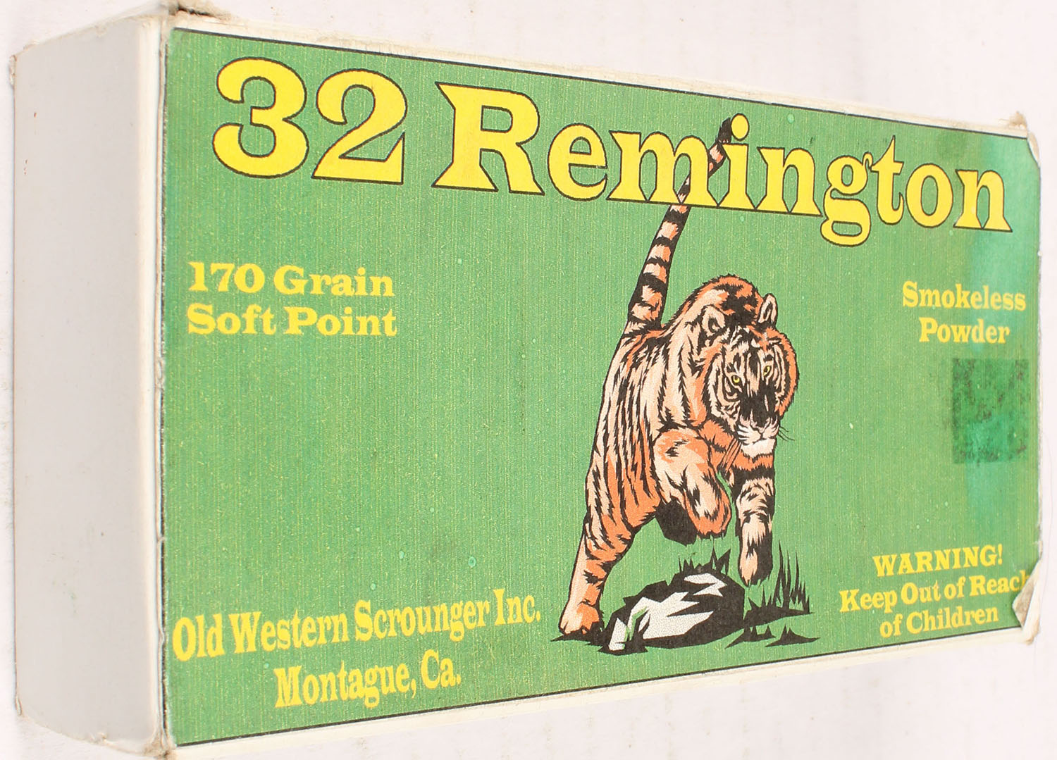 .32 Remington box Full of R&P .30 Rem., 1pc. multi-colored box, box is bright and clean, Ammo is excellent. Grade: Excellent - Value: 10 to 50