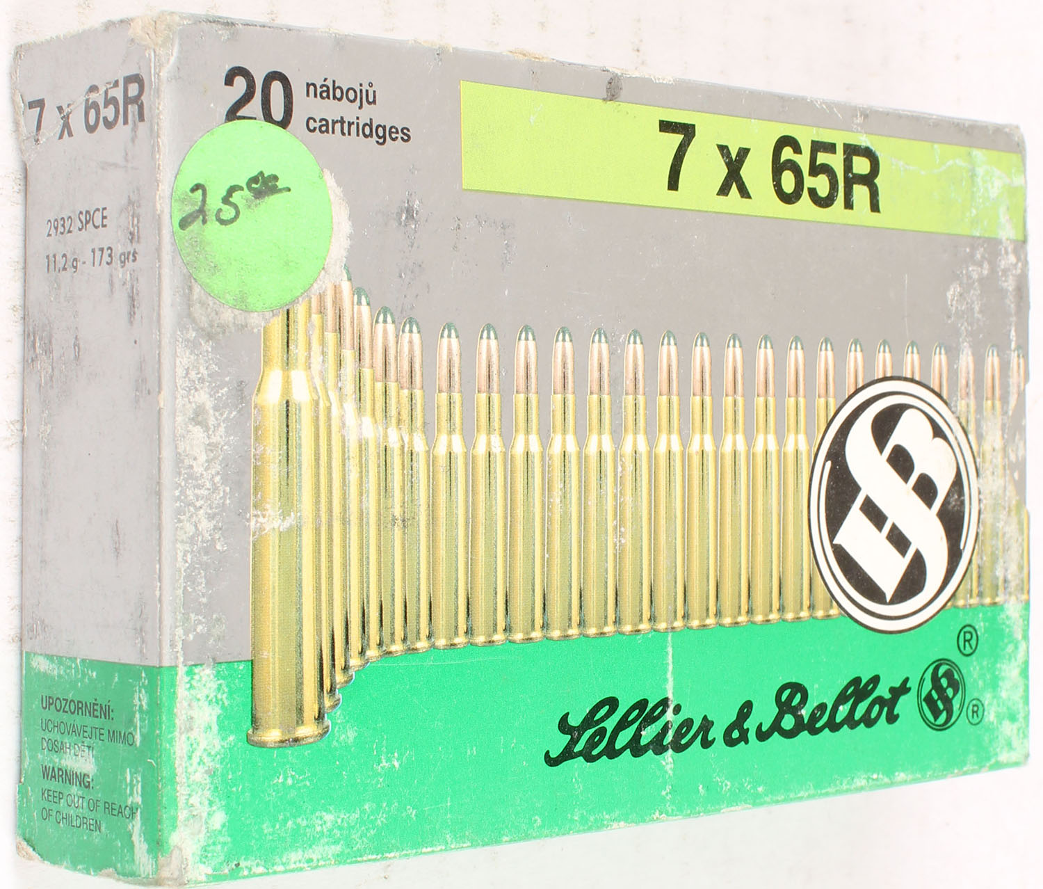 Sellier & Bellot, 7 x 65R, FULL, has scuffing, ammo is very good. Grade: Very Good ++ - Value: 10 to 50