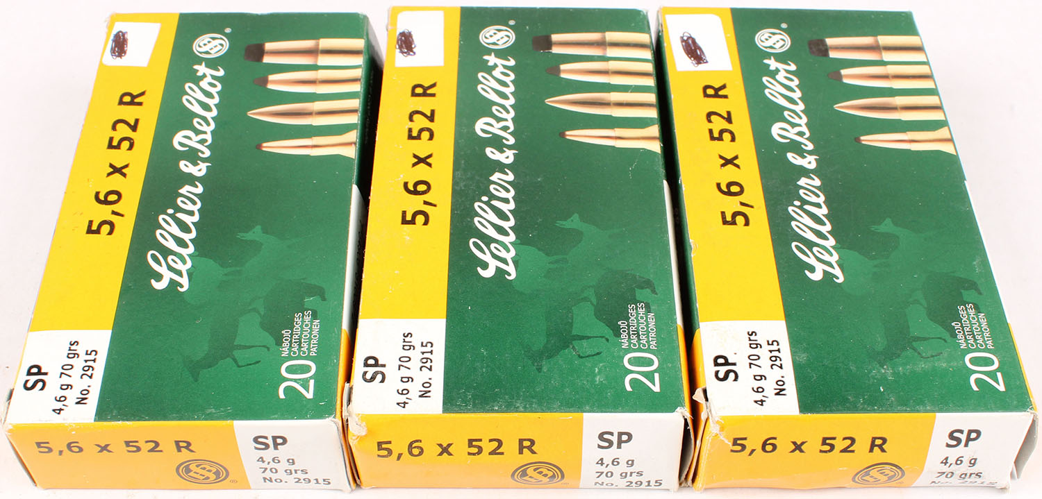 | Lot of 3 Sellier & Bellot, 5.6 x 52R, FULL, has scuffing, ammo ...