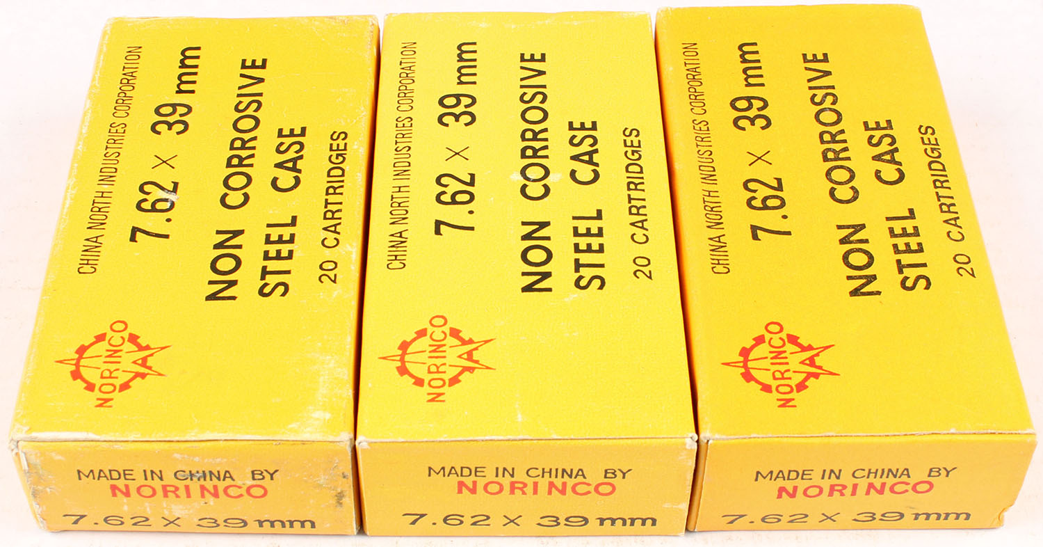 | Lot of 3 Norinco 7.62 x 39 mm, Full, ammo is excellent. Grade: E...