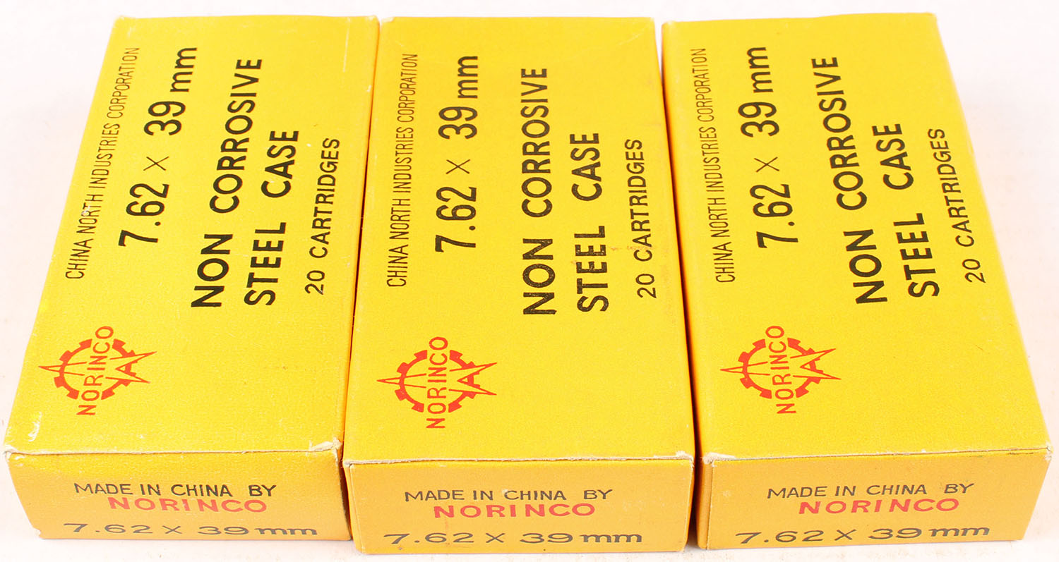 Lot of 3 Norinco 7.62 x 39 mm, Full, ammo is excellent. Grade: Excellent - Value: 16 to 60