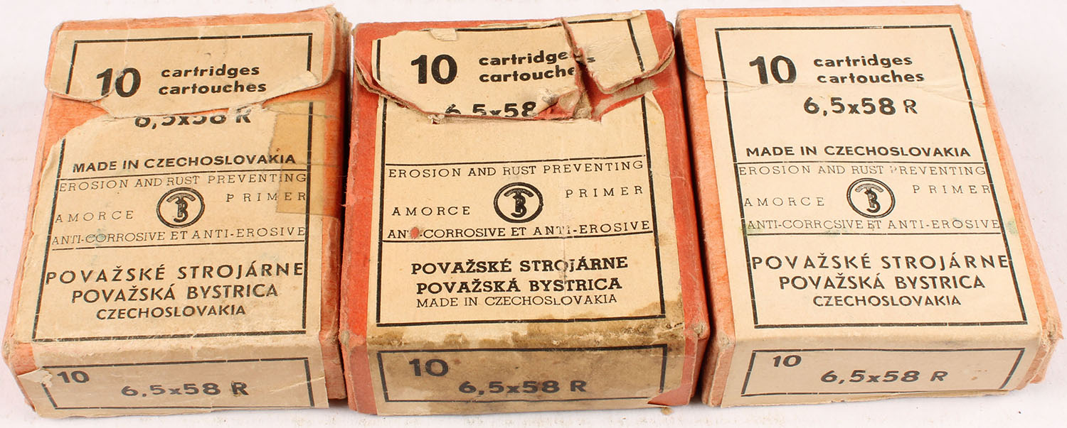 Lot of 3 foreign boxes, 6.5 x 58R, Full, ammo is excellent. Grade: Very Good ++ - Value: 10 to 40