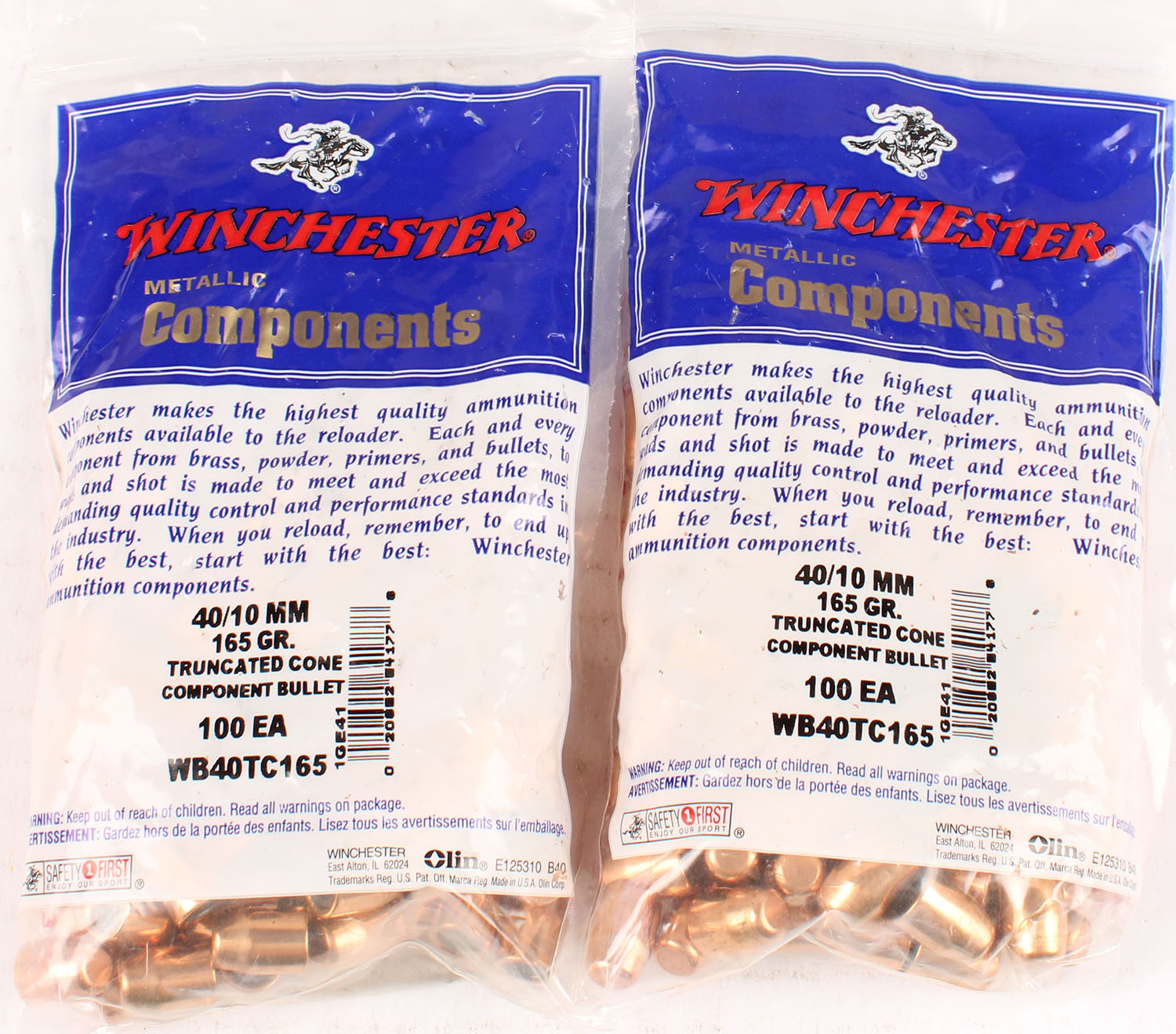 Winchester, Lot of (2) bags of .40 Cal./10mm, 165 Grain Truncated Cone Component Bullet, both bags of 100rds. are full & sealed. Grade: MINT - Value: 20 to 60