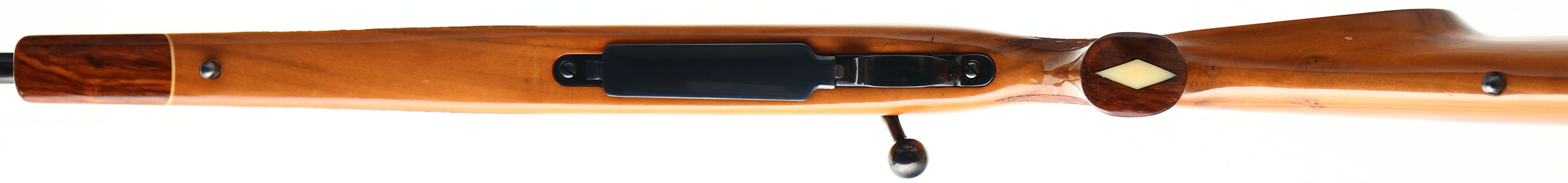 Weatherby, Mark V, CAL: 7mm Magnum, MFG: 1972-94, SN: H138307, Bolt Action Rifle, 26'' barrel. The original checkered, cheeked & flat pistol grip stock, with redwood forend tip & grip cap, is excellent. There are minor storage marks & a couple of tiny dings to the factory high gloss finish. The factory metal blue finish rates 99% overall. Bore is excellent. The receiver holds a Leupold scope base. No open sight provisions. Sling studs. Stock has a Weatherby ventilated recoil pad. A quality hunting rifle. FFL Req. - Value: 700 to 1200