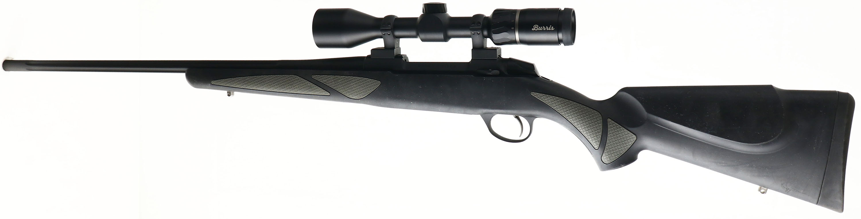 SAKO, Model 85M Finnlight, CAL: 25-06, MFG: Modern, SN: D72192, Bolt Action Rifle, 22'' fluted barrel. This model was introduced in 2006 & was largely inspired by the Sako 75. The original cheeked & flat pistol grip rubberized synthetic Monte Carlo stock is excellent, with gray grip panels. There are several very minor usage scuffs or handling. The orginal matte black metal finish rates 99% overall. Bore is excellent. The receiver is mounted with a Burris Fullfield IV 3-12X42 scope, with no open sight provisions on barrel. Factory sling studs. Stock carries a solid rubber recoil pad. Comes with the original scope box. A quality deer hunting rifle. FFL Req. - Value: 1000 to 1800