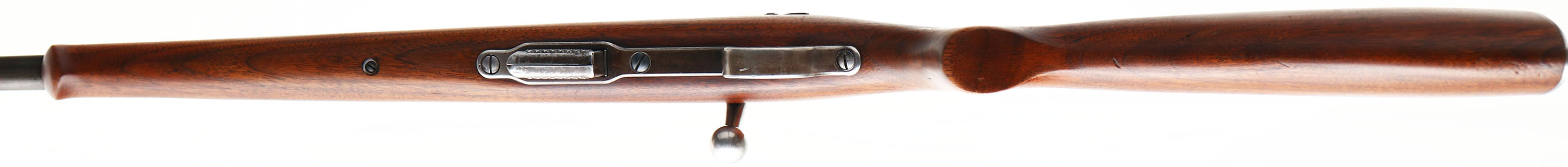 Savage Arms Corp, Model Sporter 23B, CAL: 25-20, MFG: 1923-42, SN: 92516, Bolt Action Rifle, 25'' round barrel. The original flat pistol grip wood stock, with schnabel forend, is excellent as having a professional quality refinish. The stock has been lightly sanded & nicely reoiled. The metal blue finish has worn gray, with some blue toning brown left in more protected areas. Bore is excellent & bright. The receiver carries a Lyman side mounted adjustable peep sight, with fold down aperture. The barrel carries a blank filled rear dovetail & a DW King front blade sight. Buttstock carries an original Savage smooth metal buttplate. Retains the original detachable mag. FFL or C&R Req. - Value: 200 to 400
