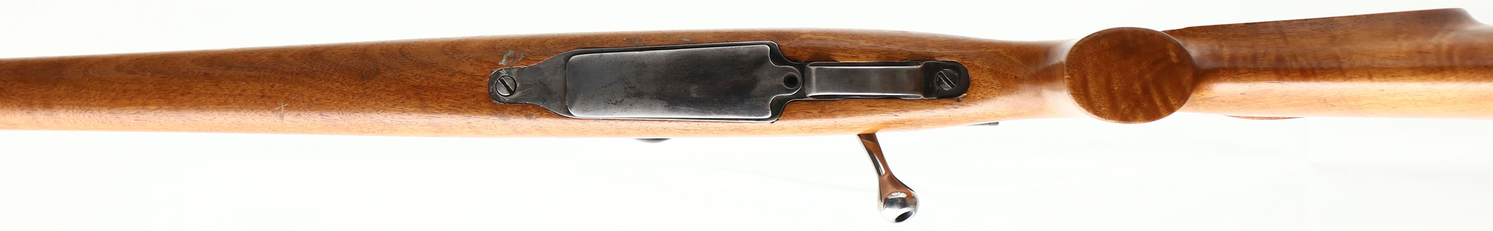 CUSTOM Eddystone, Model 1917 Enfield Custom Sporting Rifle, CAL: .270/.284 according to tag from consigner, MFG: 1918, SN: 1278863, Bolt Action Rifle, 26'' tapered barrel. The sporting Monte Carlo stock is excellent, with rollover-cheek & a flat pistol grip. The walnut stock exhibits very nice rippled grain, with minor scratches or contusions to the finish. The custom barrel is marked W.H. Hoboughon the left side of the barrel. Bill Hobaugh was well known as a quality barrel maker that practiced his trade for many years out of Phillipsburg, Montana. It was said that he was one of the few who would tackle custom octagon barrels & many custom rifle makers utilized his barrels & tubes. The barrel caliber is not marked on rifle. The un-blued (in white) barrel exterior is excellent. The receiver, floorplate & trigger guard retain remnants of the original finish. Bore is very good. The receiver carries a Lyman 2x-7x scope on Weaver detachable rings, with no open sights on barrel. Buttstock carries a Pachmayr ventilated recoil pad & sling loops. A nicely built custom sporting Enfield. FFL or C&R Req. - Value: 300 to 600