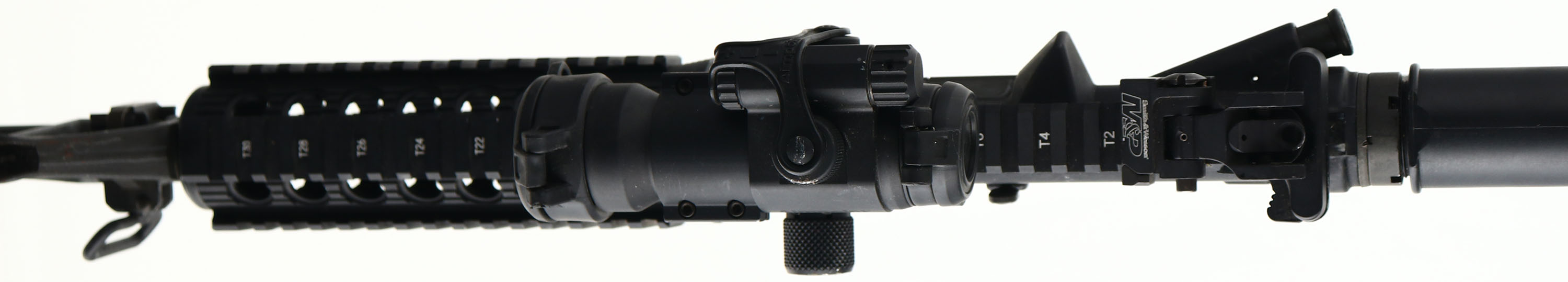 Smith & Wesson, M&P 15, CAL: 5.56, MFG: Modern, SN: SP39254, Semi Auto Rifle, 16'' barrel or 17 1/2'' w/muzzle brake. The checkered plastic grip & 6pt adjustable stock are excellent. There are handling marks & surface scrapes. The matte black finish rates 90% overall. Bore is excellent. Factory flip-up rear sight & tall post front sight. Quad picatinny forend for accessories. The rifle is also fitted with a red-dot Aimpoint Patrol Rifle Optic. Stock has checkered plastic buttplate. Magpul P-MAG 30rnd. Comes with a tan BOYT hard case, with (2) 12rnd mags & sling. FFL Req. - Value: 400 to 800