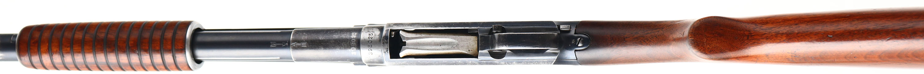 Winchester, Model 12, CAL: 16 GA, MFG: 1924, SN: 398025, Pump Action Shotgun, Choke: MOD, 2 3/4'' Chamber, 30'' Barrel. The original flat pistol grip wood stock & corncob forend are very good & solid. The stocks display minor scrapes, dings, scratches & some thinning to the original finish. The original metal blue finish remains at 50% overall. Bore is excellent. Single front bead. Buttstock carries a Pachmayr ventilated recoil pad, with 13.5'' LOP. FFL or C&R Req. - Value: 400 to 800