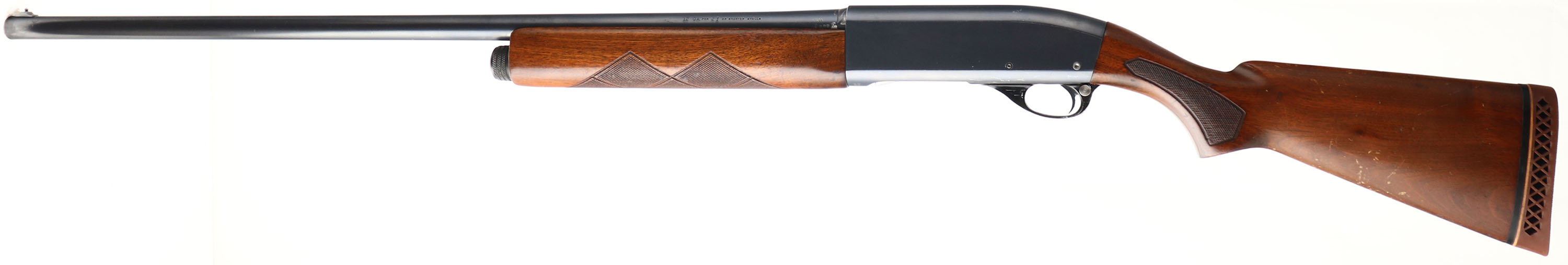 Remington, Model 11-48, 12 GA., MFG. 1949-68, SN: 5012396, Semi-Auto, 2 3/4'' or shorter, Full Choke, 30'' round barrel with silver front bead, The original checkered & flat pistol grip wood stocks are very good, with some scratches & contusions to the original finish. Original metal blue finish is 95% on receiver, 90% on the barrel. Bore is very good, LOP 13 5/8'' over ventilated Pachmayr pad, Nice original model 11-48. FFL or C&R Req. - Value: 400 to 600