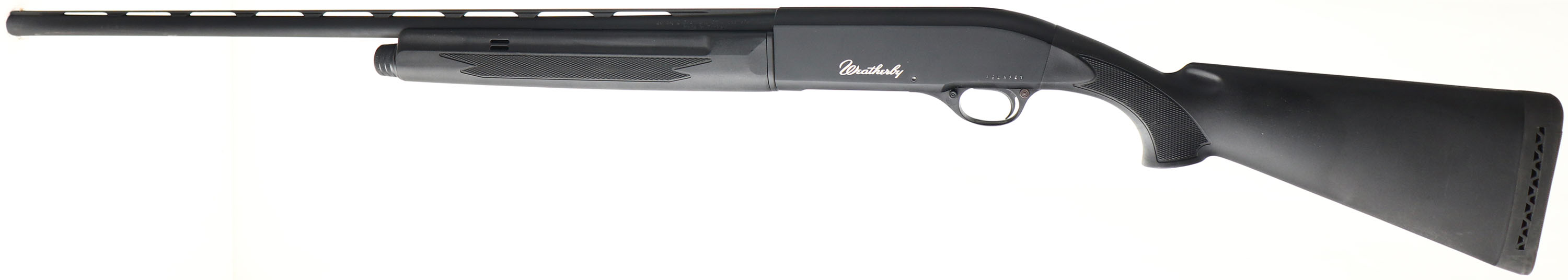 BOXED Weatherby Model SA-08, CAL: 20 GA, MFG: Mod, SN:AE00150, Semi Auto Shotgun, Choke: tubes, 28'' Ventilated rib barrel. The original checkered & flat pistol grip synthetic stocks are excellent, virtually no defects. The metal blue finish rates 99%+ overall on the barrel & receiver. The receiver carries the Weatherby name on both sides'. Bore is excellent. The ventilated rib holds a single front bead. Buttstock carries a Weatherby, ventilated recoil pad. Comes in the original box, with extra tubes, instruction manual, tool, lock & key. LOP: 14'' overpad. FFL Req. - Value: 300 to 500