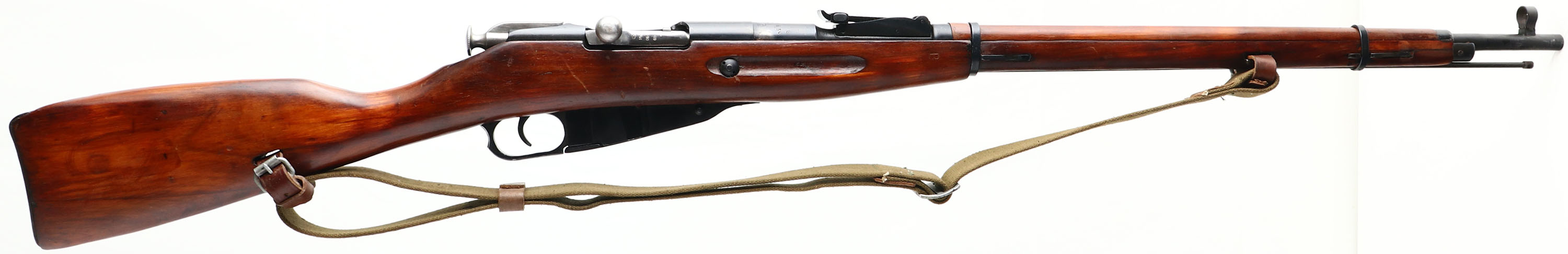 Izhevsk. Model: M91/30. Cal: 7.62x54mmR. MFG: 1942. S/N: 9130086474 (original Russian KW6830). Bolt Action Rifle. 29'' Barrel. The straight wrist wood stock is very good, has been sanded & re-finished, faint cartouches remain on right side of cheek & in right finger groove. The metal finish rates 95% overall. top of barrel is marked with Hammer & sickle in circle of wheat, ''1942'', Russian S/N, Arrow in triangle, & other proof marks. Left side of receiver is stamped with importer mark & importer S/Ns, S/N matched bolt, floor plate, & butt plate. Bore is good, beginning to darken with lightly thinned rifling. Post front sight with protective globe, U-notch Tangent Rear sight marked 1 to 20. steel butt plate with small nicks & wear, upper tang is marked with S/N. Has cleaning rod. FFL or C&R Req. - Value: 250 to 500