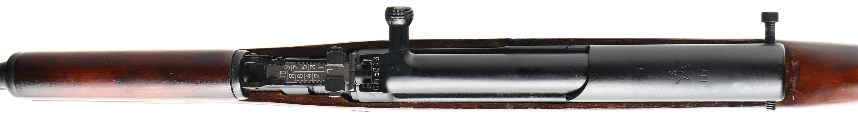 Tula, Model: SKS-45, Cal: 7.62x39, MFG: 1951, S/N: CM 5013, Semi-auto Rifle, 20 3/8'' Barrel, with a after market muzzle break that's pinned in placed. The semi-pistol grip wood stock is very good, with light nicks, dings, scratches, & wear from use/age, stock is a factory replacement from when it was refurbished by the arsenal, left side of the stock by the cheek is marked with the new S/N and has a faint marking of the old S/N, various small cartouches on bottom of wrist & by the bayonet. The black paint finish was added when it was refurbishes by the arsenal & it is 95% with light scratches & wear marks. Top of receiver cover is marked with Tula arsenal star stamp, ''1955r'', left side of receiver is marked with proof marks & S/N, right side of receiver is marked with proof marks, importer marks, & importer number, rear of barrel is stamped with proof marks, Bolt, magazine, & trigger guard are all S/N matched. Bore is Excellent. Hooded front sight post, tangent U-notch rear sight marked 1 to 10. Steel trapdoor Butt plate with full cleaning kit inside, Butt plate has scratches & wear. One bottom & one side sling mount, has cleaning rod, has a replaced takedown pin with a screw. FFL or C&R Req. - Value: 550 to 1100