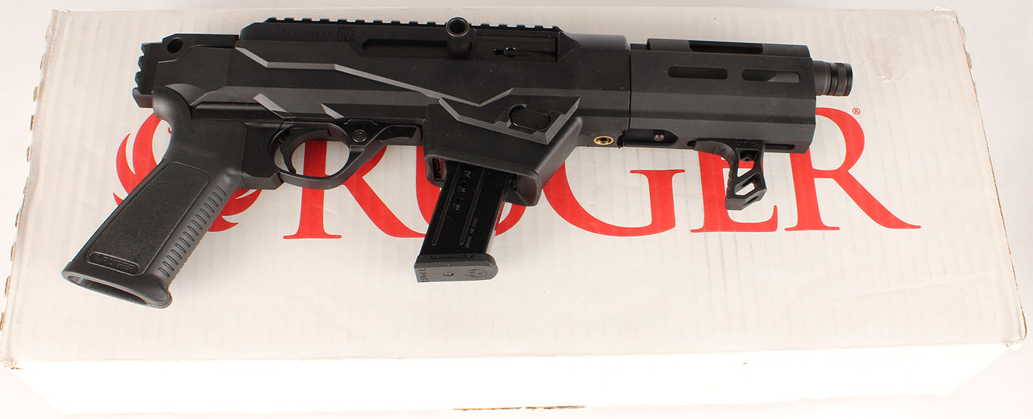 NEW, BOXED, Ruger PC Charger, CAL: 9mm, MFG: Modern, SN: 913-52631, Semi Auto Pistol, 6 1/2'' barrel The grooved polymer grip frame is excellent. The factory matte black finish rates 99%+ overall. Bore is mint. Factory sights. Comes in factory box, with owners manual, extra mag, speed loader & lock. Box condition is excellent, with minor shelf wear. FFL Req. - Value: 500 to 800
