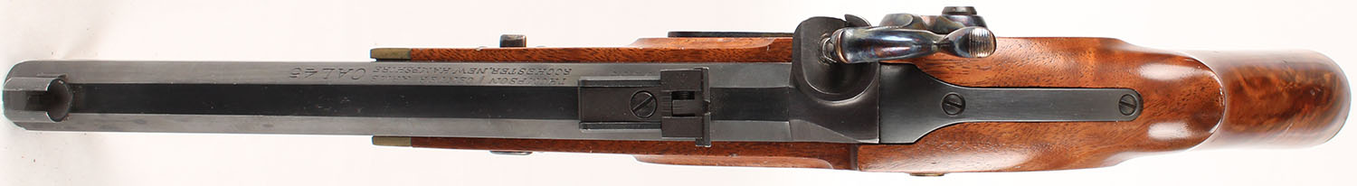 Thompson Center Arms, Patriot Target Pistol, CAL: 45, MFG: Modern, SN: 20208, Percussion Muzzleloader Pistol, 9'' octagon barrel. The ergonomic wood grip with integral beavertail is excellent. There are a few minor handling marks & dings to the finish. The metal blue finish on the barrel rates 95%. The case-hardened side plate retains vivid case-colors. Brass furniture is excellent. Bore is excellent. Factory target sights. Double set trigger. Ramrod present. Blackpowder, No FFL Req. - Value: 400 to 600