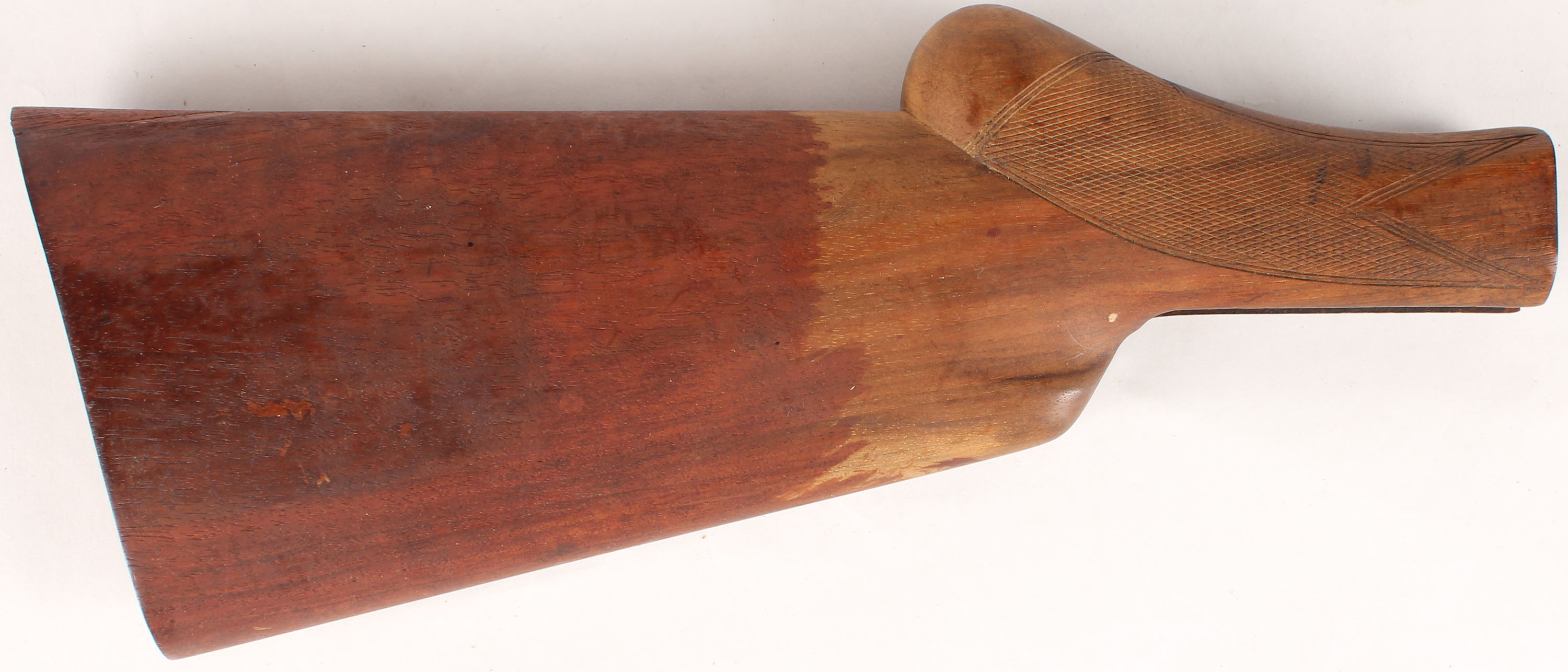 | Unmarked wood buttstock with round knob pistol grip. Grade: Ver...