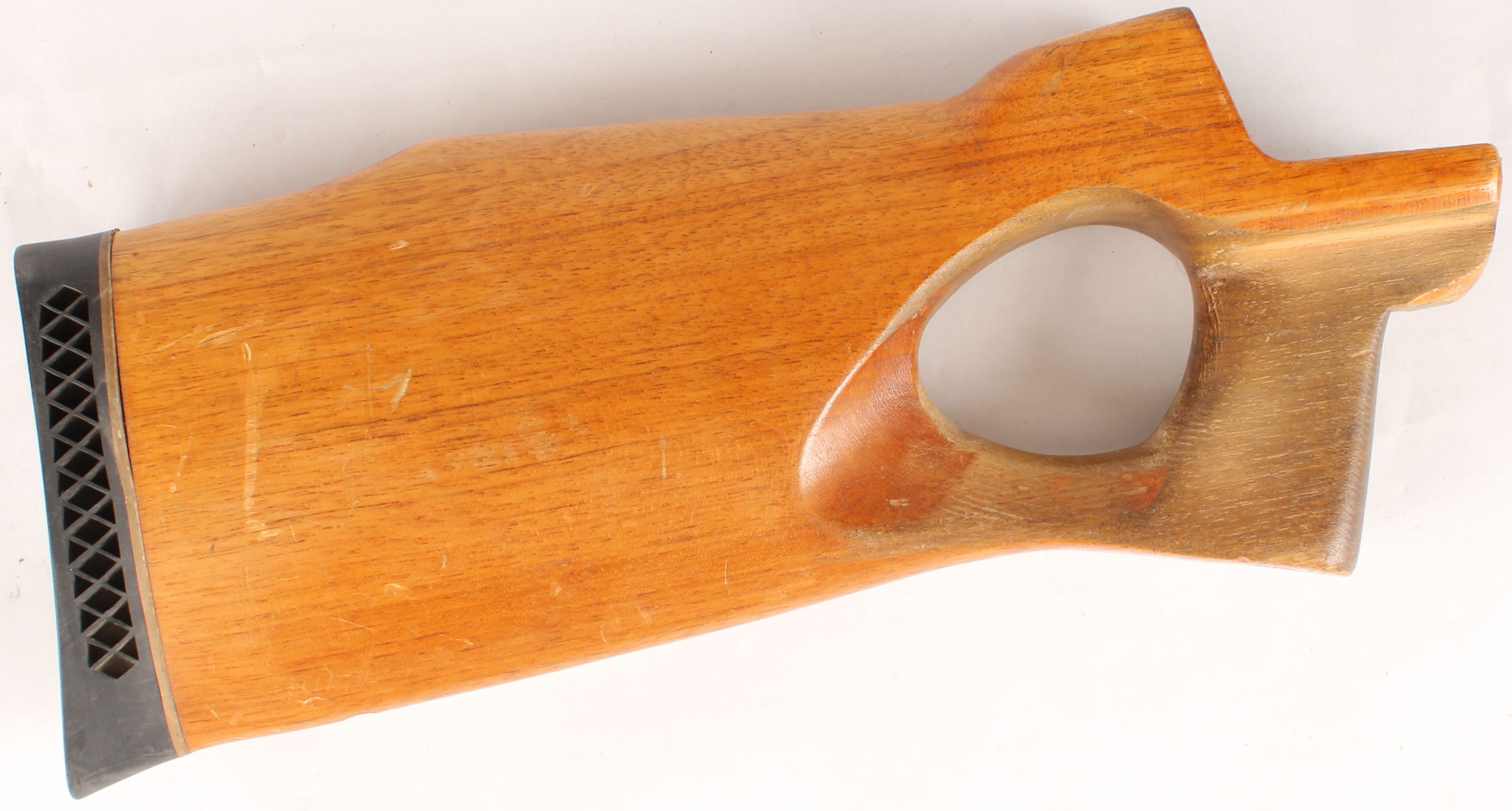 AK/SKS Style thumbhole wood stock, with thinning to finish near the thumbhole. Handling marks & light scrapes to the finish. Grade: Very Good+ - Value: 10 to 100