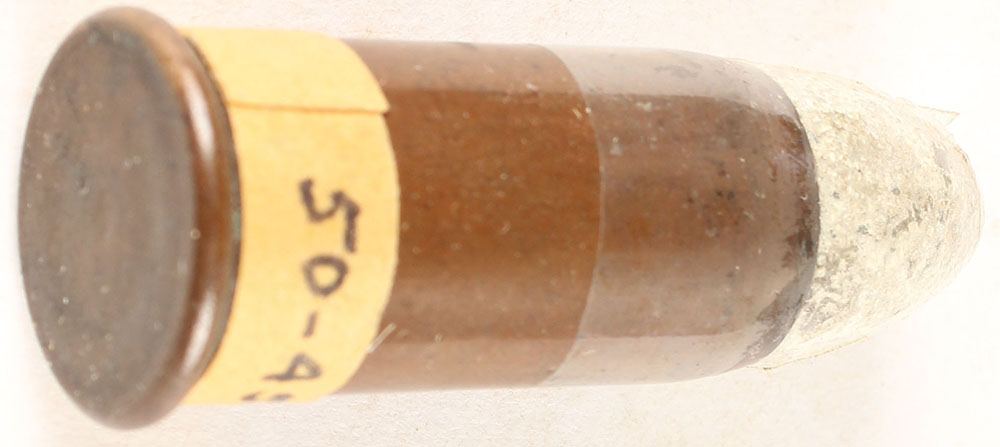 50-45 Peabody. NHS. Copper Case, semi point lead bullet. CL=1.16''. See Hoyem V1, pg 149. Grade: Excellent - Value: 100 to 300