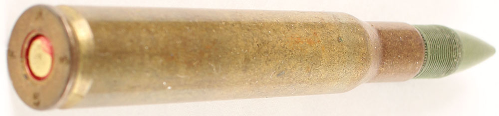 30-06 Springfield. HS:''F A 5 5''. PT serrated steel bullet coated with Teflon. Red primer annulus. Experimental, FAT 12E3. See HWS 3, pg 122. Grade: Excellent - Value: 20 to 100