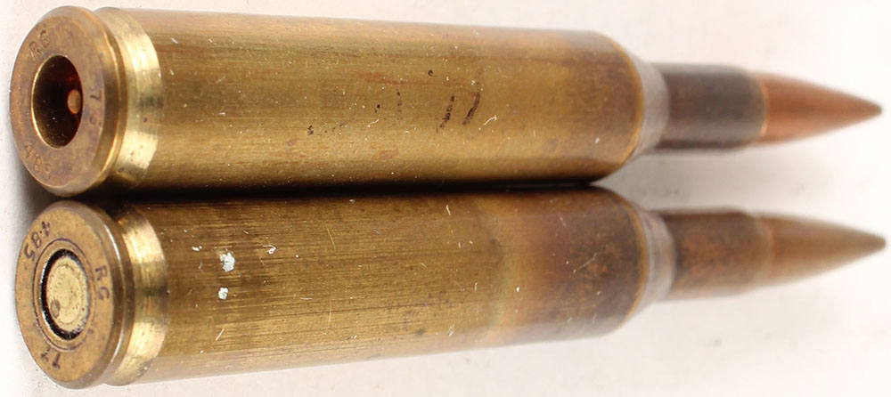 Lot of 2. 4.85x49mm British Experimental. (1) Ball, HS:''RG 77 4.85'', PT CJ FMJ. (1) Dummy, HS:''RG 76 4.85'', PT CJ FMJ no primer. Grade: Very Good ++ - Value: 20 to 40