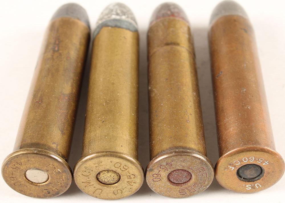 Lot of 4. 45-60 WCF. (2) by Peters, HS:''PETERS 45-60'', all different. (1) by USC, HS:''US 45-60''. (1) by UMC, HS:''U.M.C. H 45-60 S. Grade: Very Good + - Value: 20 to 50