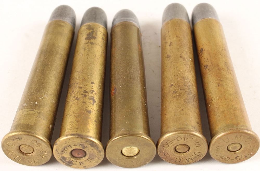 Lot of 5. 45-60 WCF. (3) by Peters, HS:''PETERS 45-60'', (1) by USC, HS:''US 45-60''. (1) by REM-UMC, HS:''REM-UMC 45-60''. Grade: Very Good - Value: 20 to 50