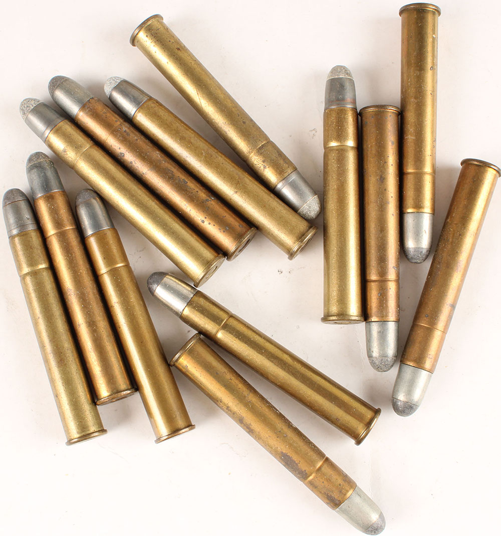 Lot of 13. 40-72 Winchester. All by Winchester. Oval brass primer. RN tinned SP. Grade: Very Good + - Value: 60 to 100