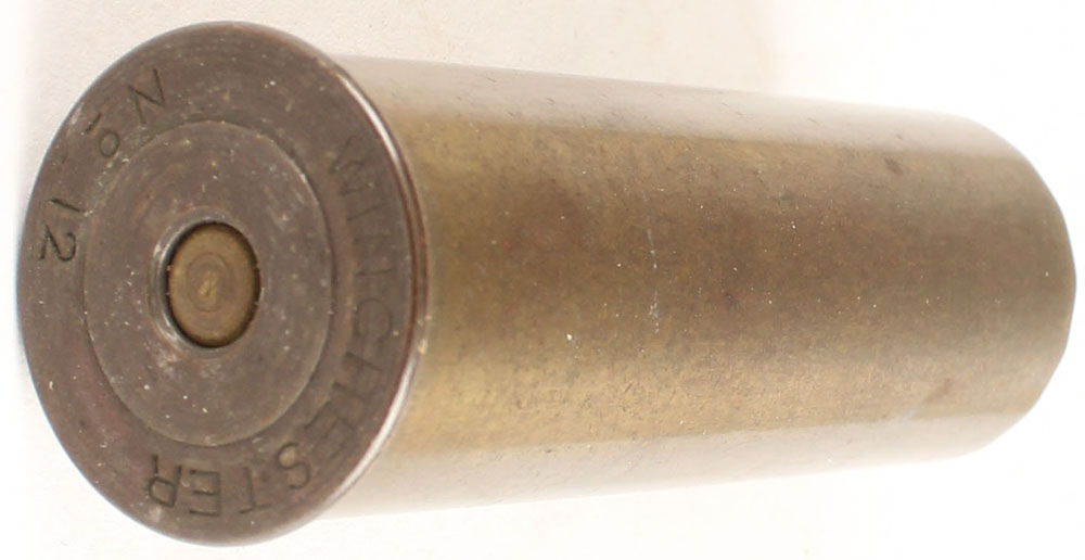 H/S= ''Winchester No 12'' 2 1/2'' OAL, loaded brass shotshell. Grade: Very Good ++ - Value: 6 to 30
