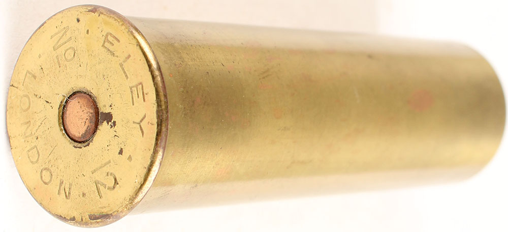 H/S= '' ELEY London No 12'' 2 3/4'' OAL, empty brass shotshell. Grade: Very Good + - Value: 6 to 30