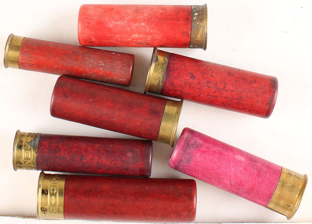 Lot of 7 Remington UMC, mixed gauges, loaded red paper cases. Grade: Very Good ++ - Value: 10 to 100
