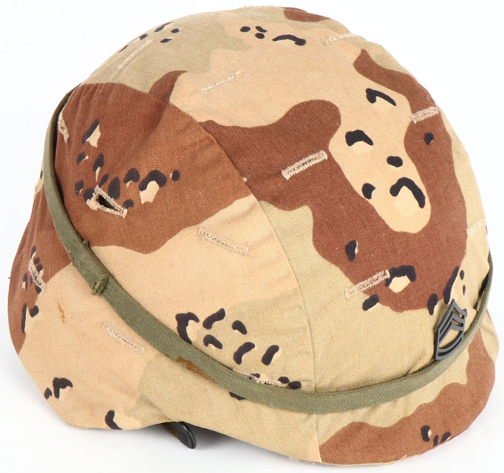 | US, PASGT helmet, has a Six-Color Desert Pattern cover on helmet...