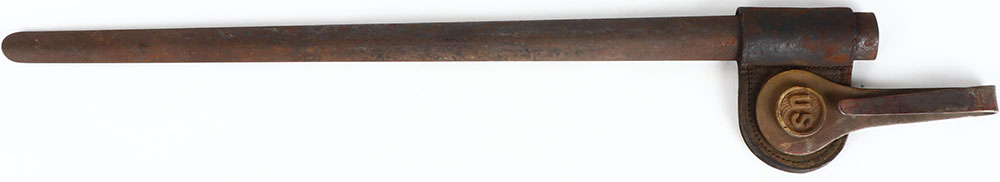 US, Springfield Trapdoor bayonet sheath & frog, sheath has rust & wear, leather is worn & is starting to crack. Grade: Very Good - Value: 20 to 60