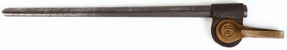 US, Springfield Trapdoor bayonet sheath & frog, sheath has rust & wear, leather is worn & is starting to crack. Grade: Very Good - Value: 20 to 60