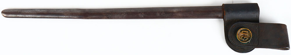 US, Springfield Trapdoor bayonet sheath & frog, sheath has rust & wear, leather is worn & is starting to crack. Grade: Very Good - Value: 20 to 60