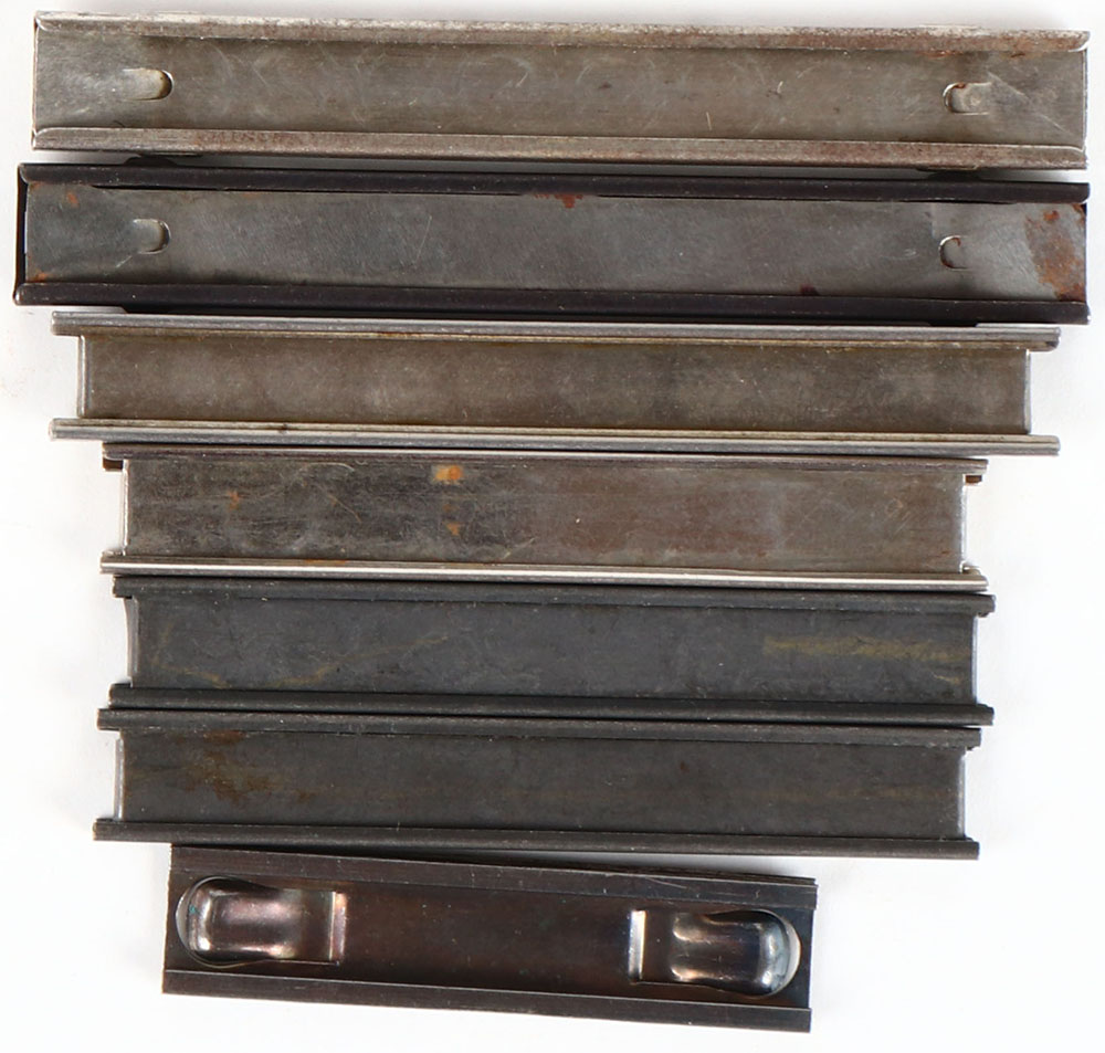 lot of 7, various pistol stripper clips, for all different calibers. Grade: Excellent - Value: 20 to 40