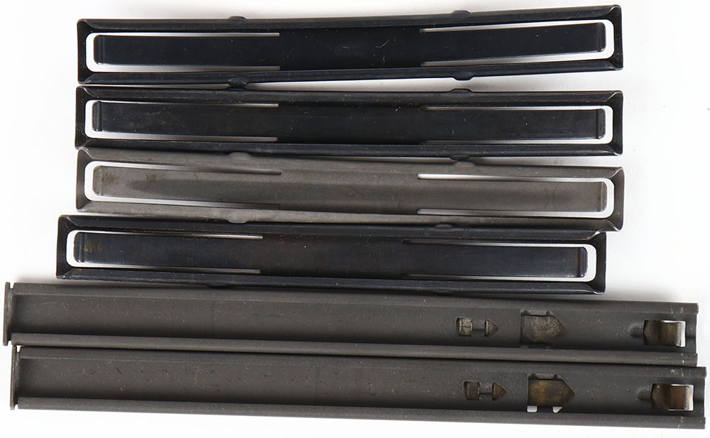 lot of 6 stripper clips, 4, 7.62x39mm, 10 Rd. stripper clips all different MFG, 2 5.45x39 15 Rd. stripper clips for a AK-74. Grade: Excellent - Value: 30 to 60