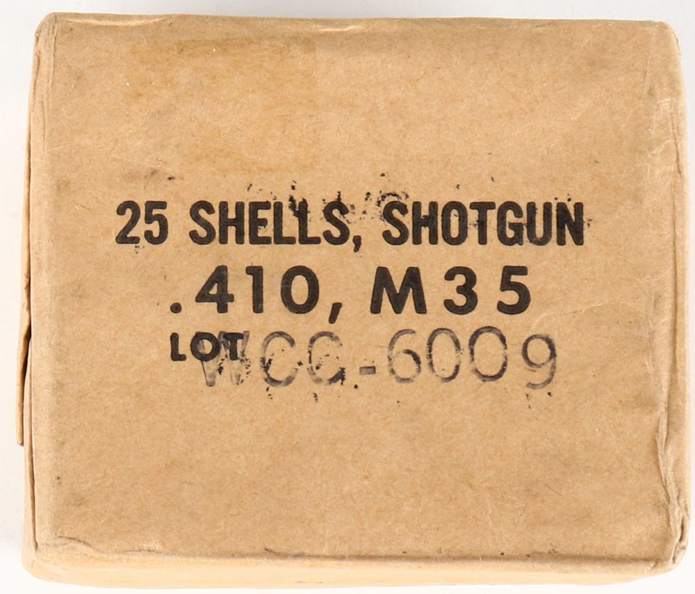 Western, .410 M35, Lot WCC-6009, foil wrap, FULL & SEALED, brown foil with black print, wrap is solid with light rub wear & light edge/corner wear. Grade: Excellent + - Value: 30 to 60