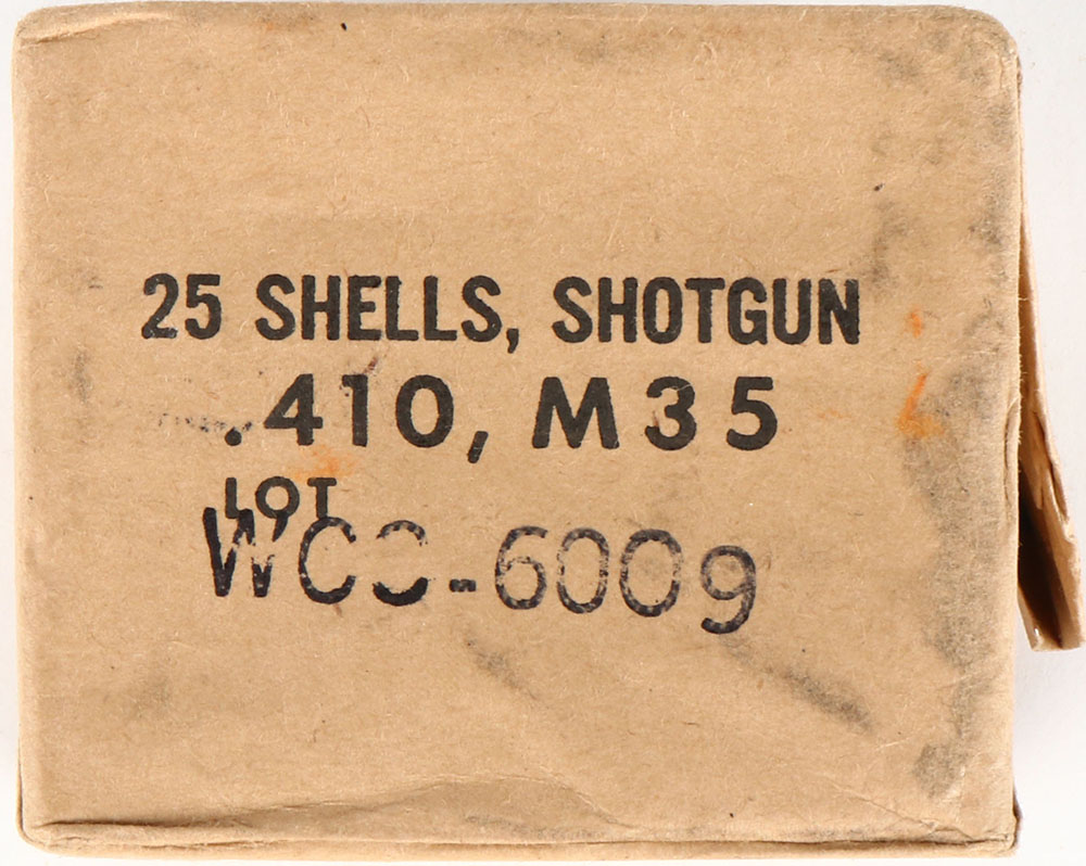 Western, .410 M35, Lot WCC-6009, foil wrap, FULL & SEALED, brown foil with black print, wrap is solid with light rub wear & light edge/corner wear. Grade: Excellent + - Value: 30 to 60