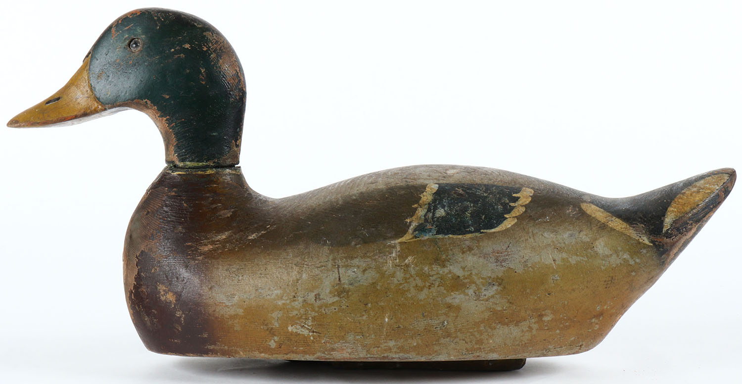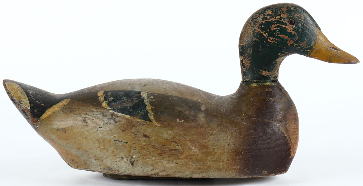 Mallard Drake by Pratt Mfg. Company, Chicago, IL, 1921 1939. glass eyes, original paint protected by an old coat of varnish and possible old paint strengthening on the head, structurally excellent. Grade: Very Good - Value: 80 to 160