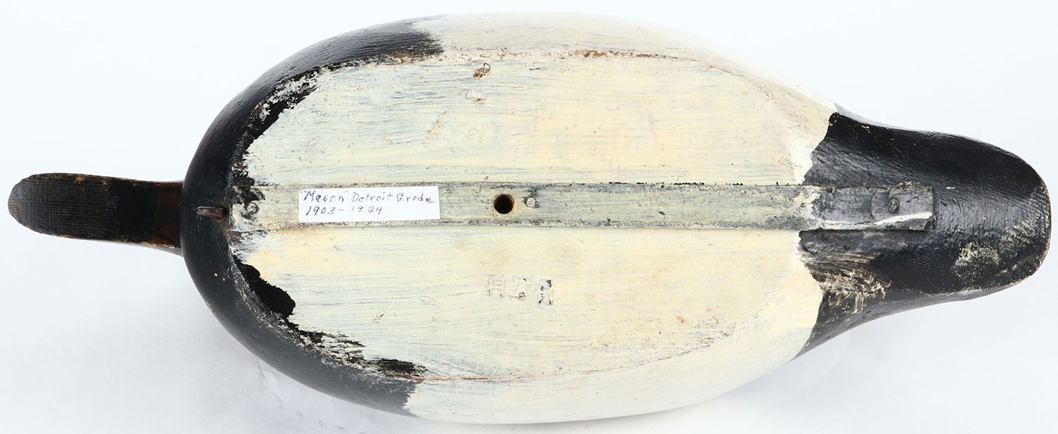 Factory Canvasback Drake, glass eyes, solid wood, apparent Mason head on a Pratt body with complete paint restoration on the body. structurally excellent. Grade: Excellent - Value: 40 to 75