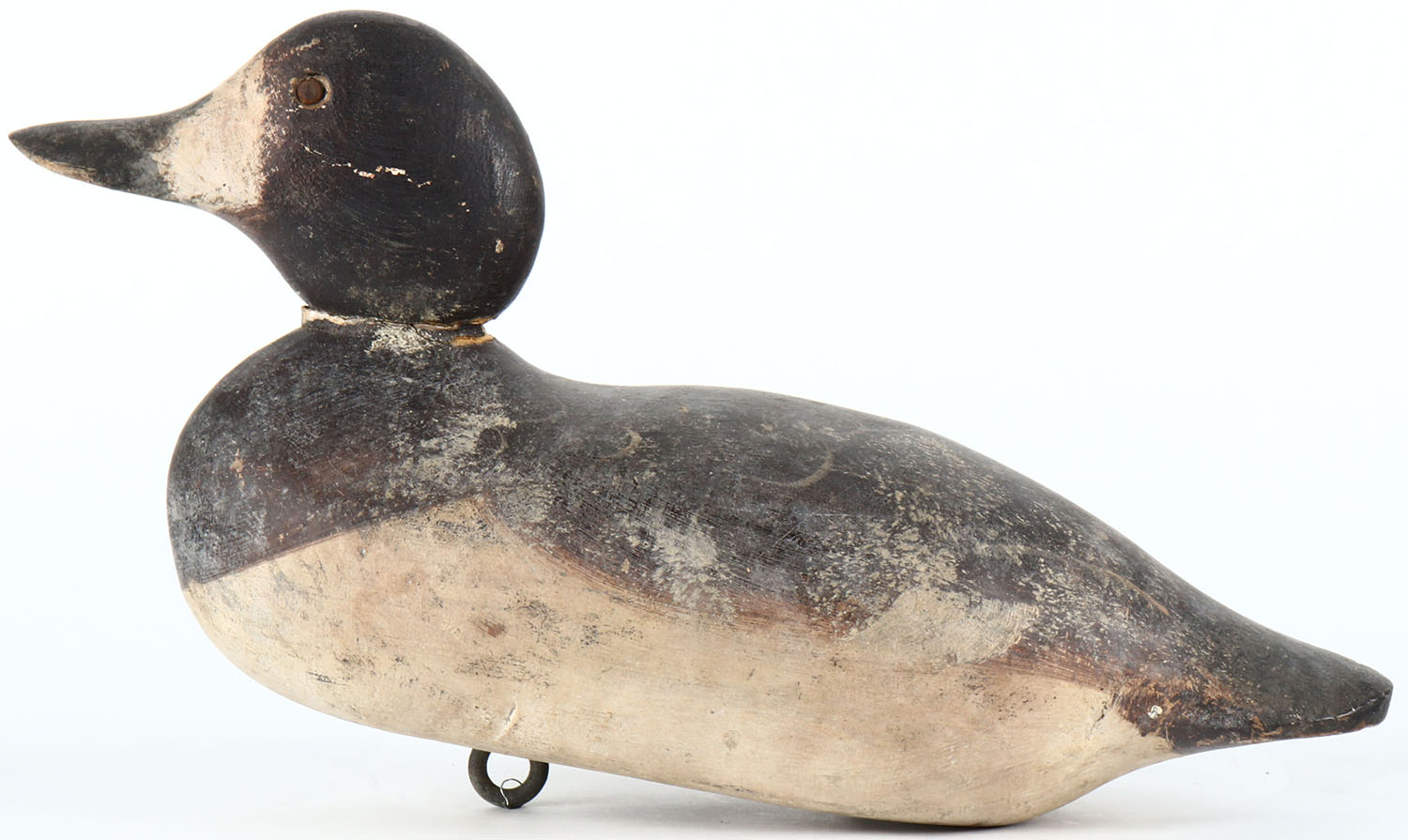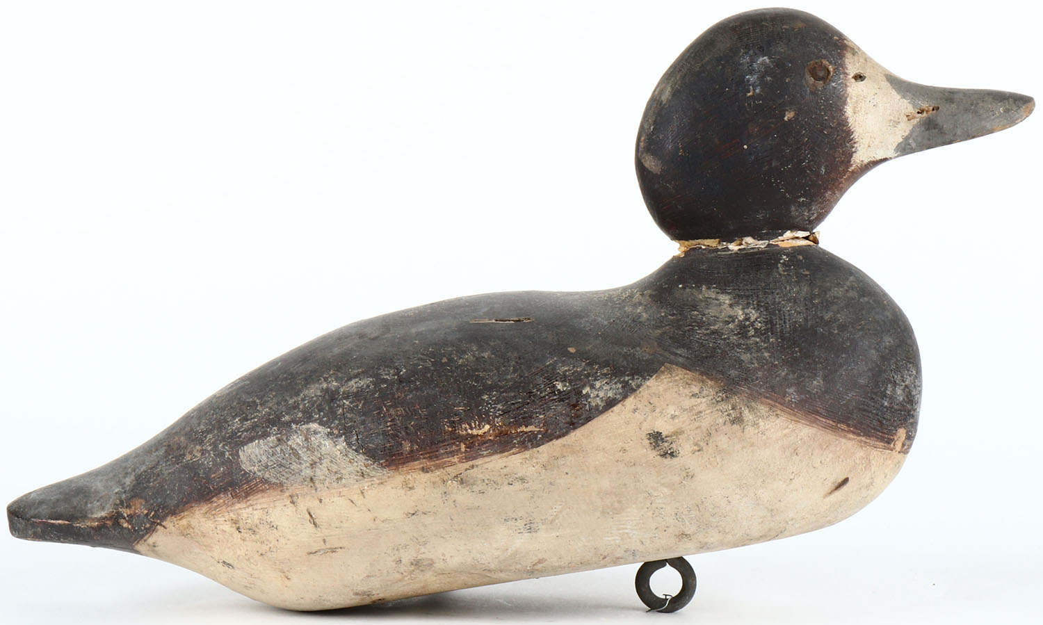 Tack-Eye Bluebill Hen by Mason Decoy Company, Detroit, MI, 1896-1924. Solid wood, very strong original paint, structurally excellent. Grade: Excellent - Value: 150 to 250