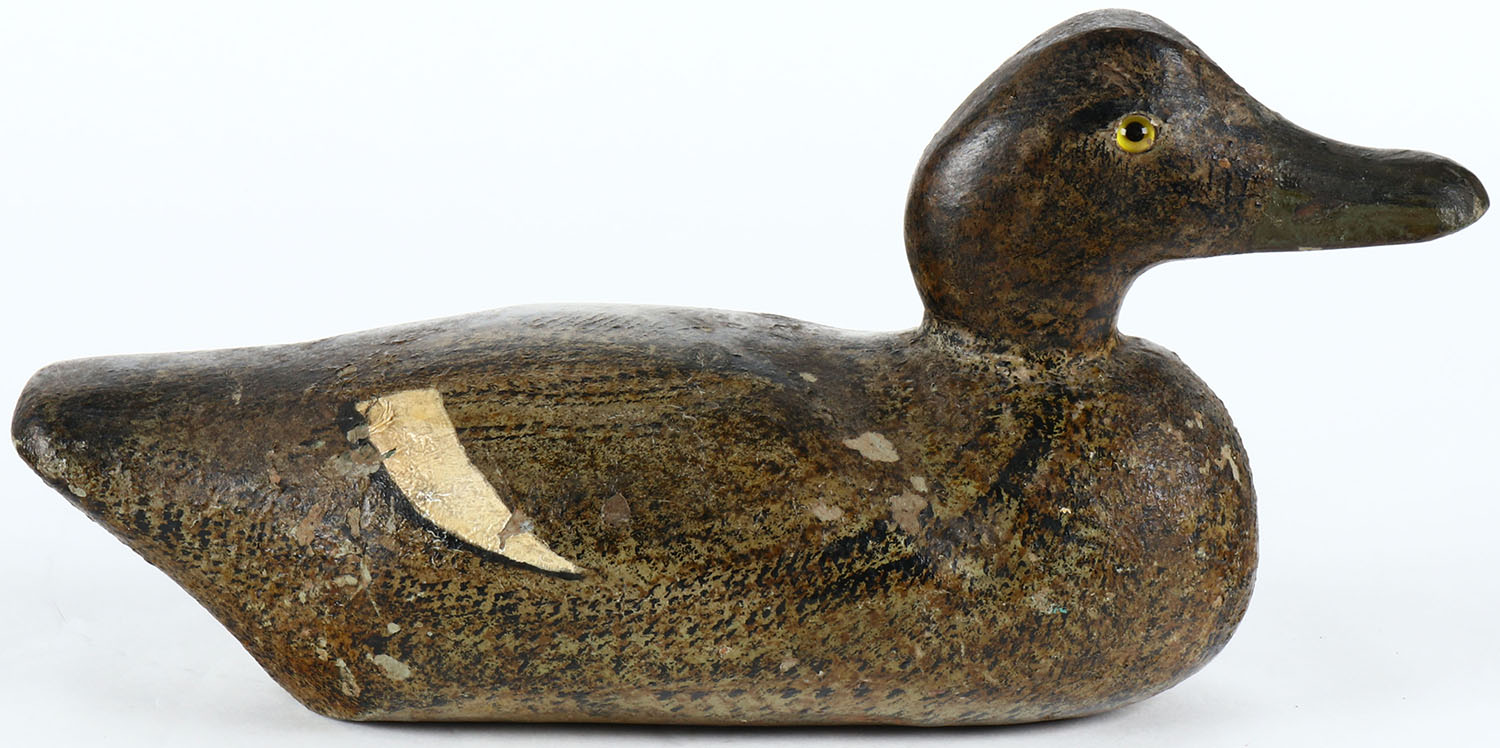 Pintail Hen unknown maker, glass eyes, solid wood, original paint, has age cracks on bottom. Grade: Very Good + - Value: 100 to 200